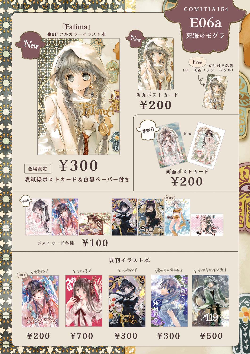 ●既刊は「119」「なつのこ、ゆめのこ」「Balcony Diary」「SMRSS」「CUBICLE」を持っていく予定です。(すべてオリジナルイラスト本です。)